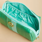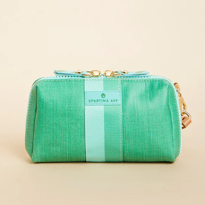Ready to elevate your golf game? The Armada Golf Accessory Pouch keeps your essentials organized on and off the course. This sporty companion features a spacious main compartment with two extra zippered pockets, plus a detachable wristlet for versatility. The magnetic ball marker—customizable with your club logo—stays secure with a gold-plated clasp. Built from splash-proof, stain-resistant nylon, it's designed to handle whatever the fairway throws your way. Spot clean and go. Dimensions: 8" W × 4.5" H × 2.25" D.