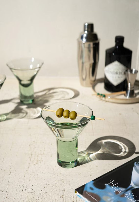Bottoms up! These martini glasses hold your drink underneath in a sturdy bottom while you casually sip from the wide mouth. Get creative with your cocktails with this interesting drinkware.