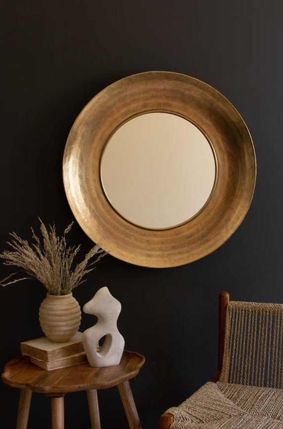 Round Hand Hammered Antique Brass Frame w/ Mirror