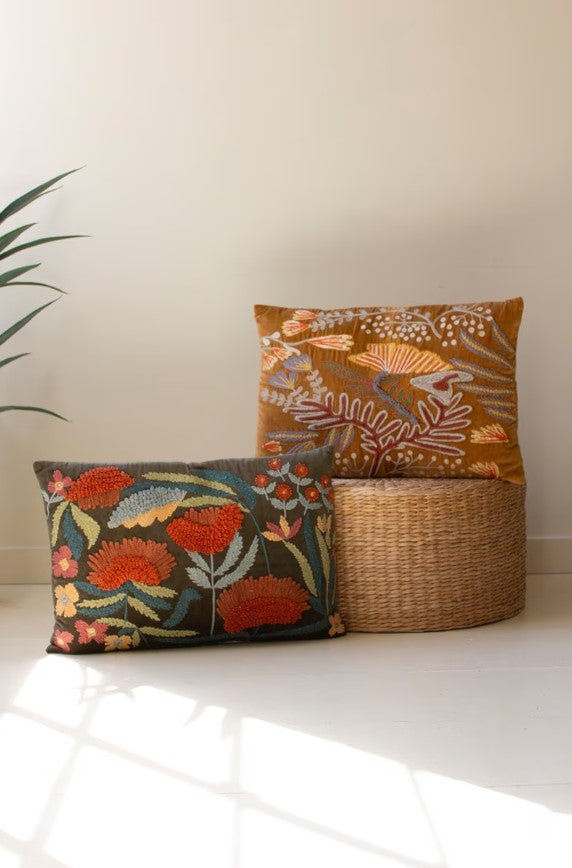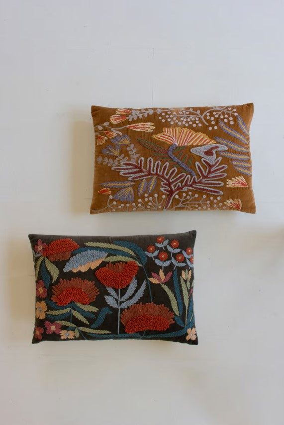 Cotton Velvet Printed Lumbar Pillow w/ Gold Foil