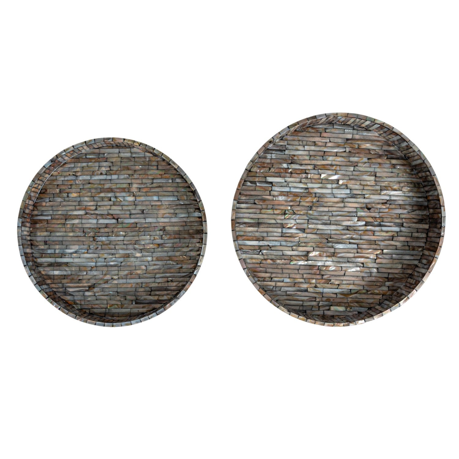 MDF Lacquered Trays w/ Handles, Brown & Taupe, Set of 2
