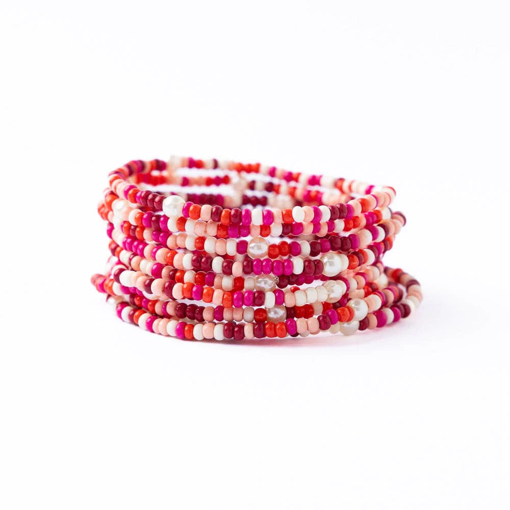 Sage Confetti Beaded 10-Strand Stretch Bracelets | Pink
