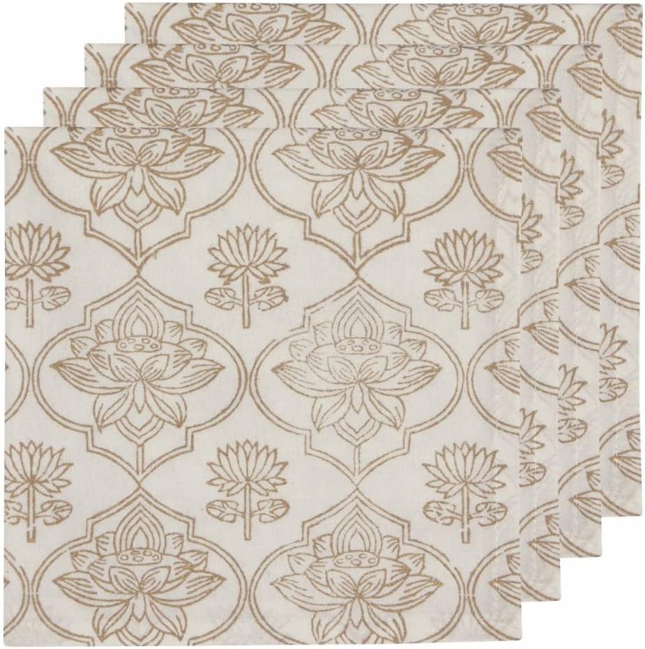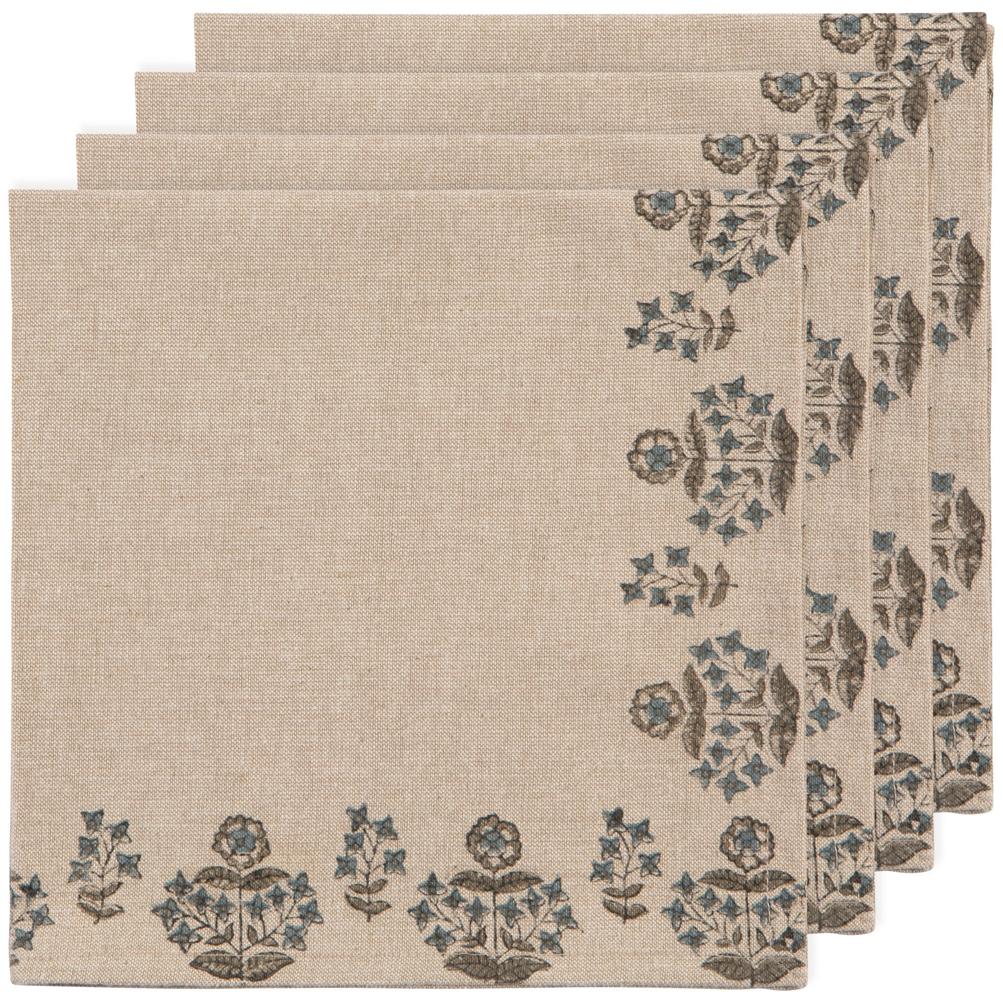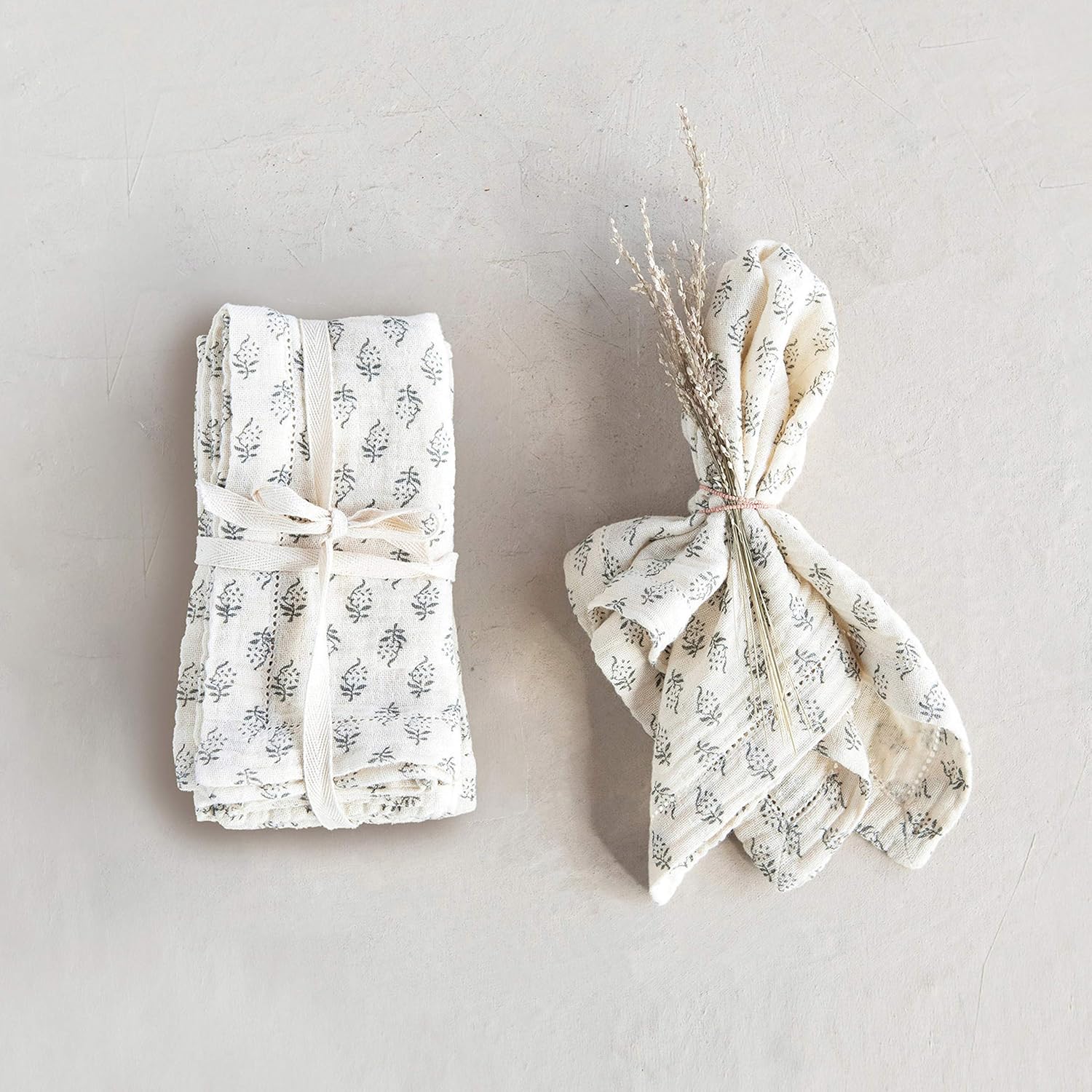 Cotton Napkins with Printed Floral Pattern | Charcoal & Cream Color