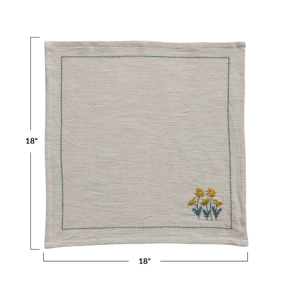 Cotton Napkins w/ Hand-Embroidery | Flowers & French Knots